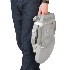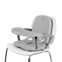 - Se fixeaza usor de scaunul adultului, atat de sezut, cat si de spatar, cu ajutorul centurilor
